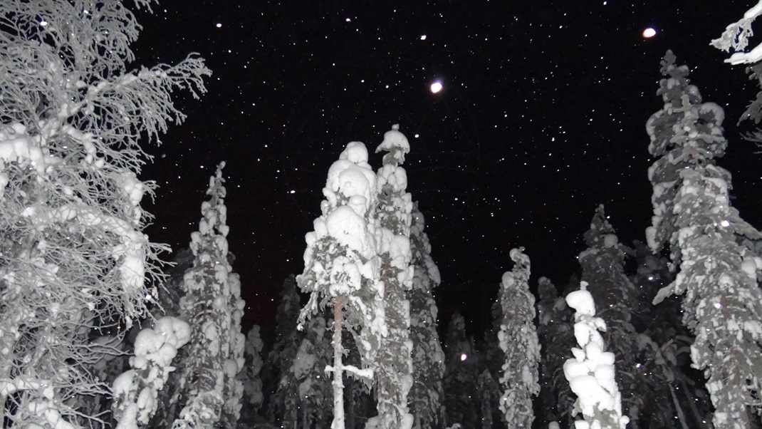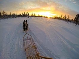 Ich bin eine Woche hier in Finnland, um genau zu sein in Kittilä und möchte gemeinsam mit Schlittenhunden den Sonnenaufgang erleben, mit einem Snowmobil über verschneite Hügel fahren und in einem, mit einem Lagerfeuer beheizten, traditionellen Tippi den Lebensweisheiten der Einheimischen lauschen.