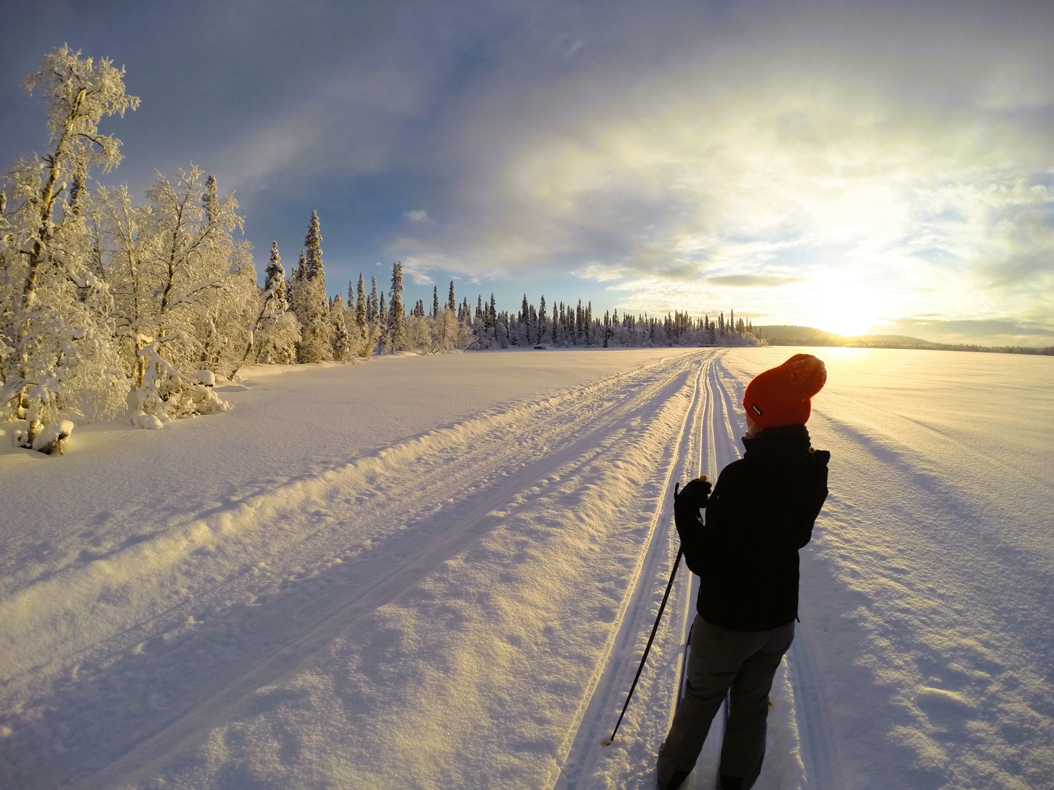 Mit der Loipe und meinen Füßen, die sich auf Skiern ihren Weg auf den unendlichen Weiten des Sees bahnen, endet meine Reise hier. Die Woche voller Abenteuer, netter, herzlicher Menschen und friedvoller Tiere geht nun zu Ende. Ich habe die Zeit und vor allem die Ruhe hier sehr genossen und werde sie vermissen. Bisher kannte ich keinen Ort davor, an dem es so still war. Bevor ich den Heimweg antrete, übergebe ich all meine Gedanken von Freiheit, Glück und Liebe in den Wind.