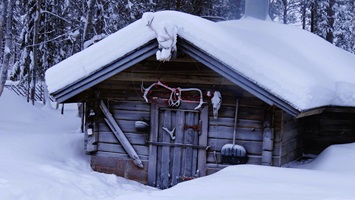 Für diesen Zeitraum lebe ich in einem abgelegenen Holzhaus mitten im Wald, umgeben von Tannen und unweit eines zugefrorenen Sees (Lappland Dream). Für mich fühlt es sich an, als würde ich in einer Filmkulisse wohnen, ganz abgeschieden von der Stadt. Mit dem Auto komme ich zur nächst gelegenen Einkaufsmöglichkeit, um mir Lebensmittel für die nächsten Tage zu kaufen.