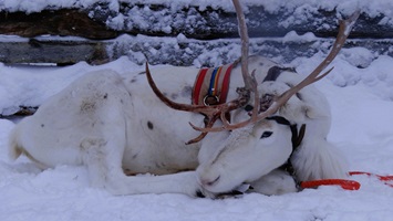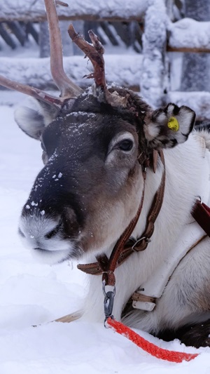 Rentiere gehören zu Lappland wie der Schnee, Glögi und die Nordlichter. Die etwa 200.000 Tiere leben hier in freier Wildbahn gemeinsam mit den Elchen, Bären, Füchsen Schneehühnern und Hasen. Mit etwas Glück, kannst du sie bei einer Wanderung durch die verschneite Umgebung beobachten. Meist waten sie gemütlich unter den Bäumen umher, um die herabhängenden Flechten oder Rinde zu fressen. Indem sie mit den Hufen den dichten Schnee wegscharren, gelangen sie an die darunter liegenden Gräser. Die wenigen domestizierten Rentiere gehören hier in Lappland zu den Menschen, wie in anderen Ländern die Pferde. Meistens werden sie vor einen Schlitten gespannt, aber auch ihr Fell und ihr Fleisch werden verarbeitet. Ich bin hier, um gemeinsam mit ihnen durch den verschneiten Wald zu waten und die Umgebung ruhig und vom Schlitten aus beobachten zu können.