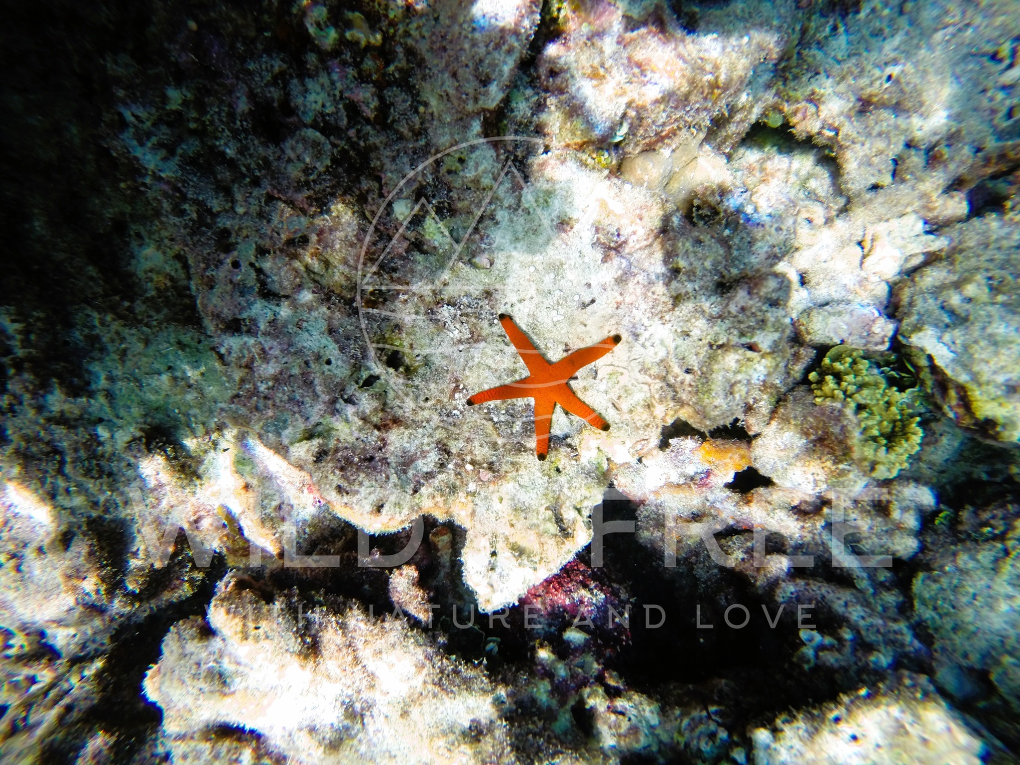 Das Riff, das sich vor der Insel befindet ist wunderschön und reicht mehrere Meter tief ins Wasser (2-4m). Hier ist noch alles bunt und sehr belebt, obwohl die Besucherzahlen stetig steigen. Während des Schnorchelns, kannst du hier den typischen Wasserbewohnern des indischen Ozeans begegnen, so z.B. dem Imperator Kaiserfisch (Pomacanthus imperator), Dreibinden Preußenfischen (Dascyllus aruanus), Wimpelfischen (Chaetodontidae), Schnappern (Lutjanidae) und Anemonenfischen (Amphiprion sp.). Die Strömung ist bei wenig Seegang angenehm und nicht zu stark. Aufgrund des immer herbeiströmenden Wassers aus den Tiefen des Ozeans, konnte sich hier eine wunderschöne kleine Unterwasserwelt formen, die in jedem Winkel Lebewesen beherbergt.