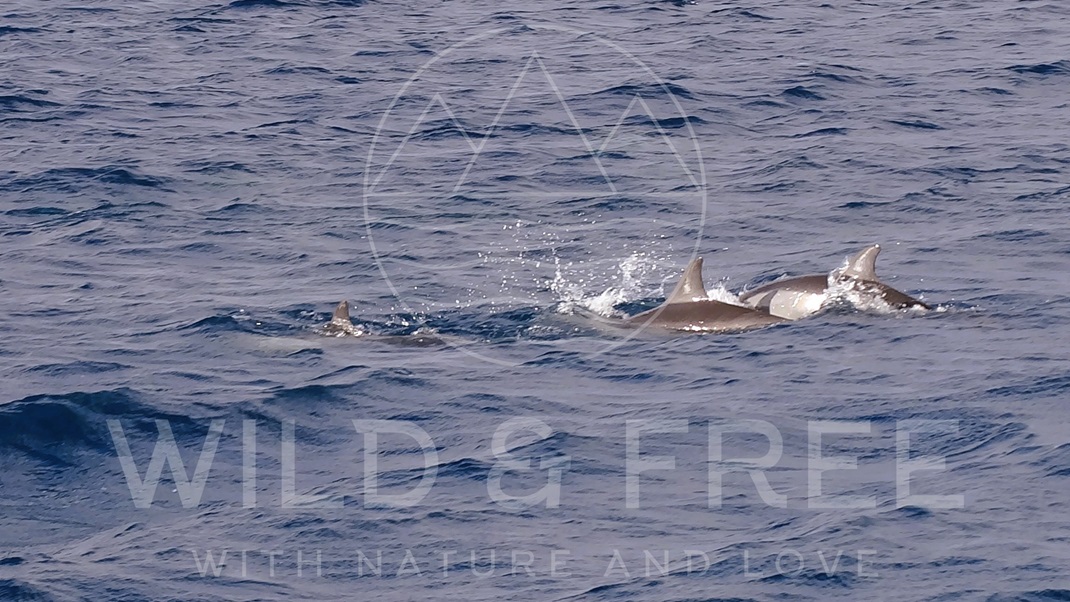 "Ich lasse mich langsam vom Bord des Bootes mit meinen Flossen, Taucherbrille und Schnorchel in das Meer gleiten. Ich schwimme einige Meter vom Boot weg und schaue ruhig auf der Wasseroberfläche treibend einfach in die Tiefe. Und plötzlich schwimmen hunderte von Spinner-Delfinen unter mir. Sie nehmen mich zwar neugierig mit ihren Augen war, sind aber so auf ihr Ziel fixiert, dass sie ohne Pause langsam und stetig an mir vorüberziehen. Ich kann sie miteinander kommunizieren hören. Es pfeift und knackt überall um mich herum. Auch die kleinen Jungtiere schwimmen mühelos mit den Alttieren mit. Ich versuche diese faszinierenden Wesen eine Weile zu begleiten, bis sie, so langsam wie sie gekommen sind, einfach wieder in den Weiten des Ozeans verschwinden".