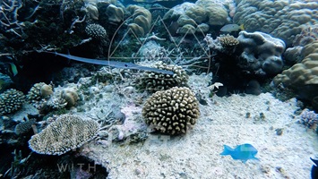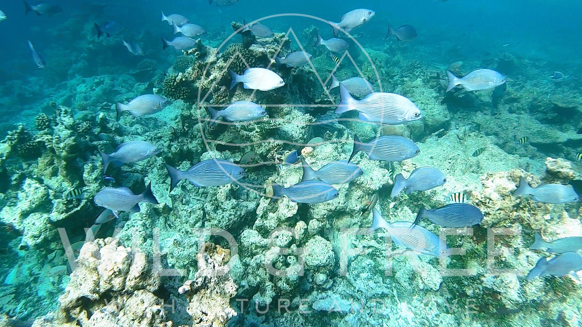 Das Riff, das sich vor der Insel befindet ist wunderschön und reicht mehrere Meter tief ins Wasser (2-4m). Hier ist noch alles bunt und sehr belebt, obwohl die Besucherzahlen stetig steigen. Während des Schnorchelns, kannst du hier den typischen Wasserbewohnern des indischen Ozeans begegnen, so z.B. dem Imperator Kaiserfisch (Pomacanthus imperator), Dreibinden Preußenfischen (Dascyllus aruanus), Wimpelfischen (Chaetodontidae), Schnappern (Lutjanidae) und Anemonenfischen (Amphiprion sp.). Die Strömung ist bei wenig Seegang angenehm und nicht zu stark. Aufgrund des immer herbeiströmenden Wassers aus den Tiefen des Ozeans, konnte sich hier eine wunderschöne kleine Unterwasserwelt formen, die in jedem Winkel Lebewesen beherbergt.